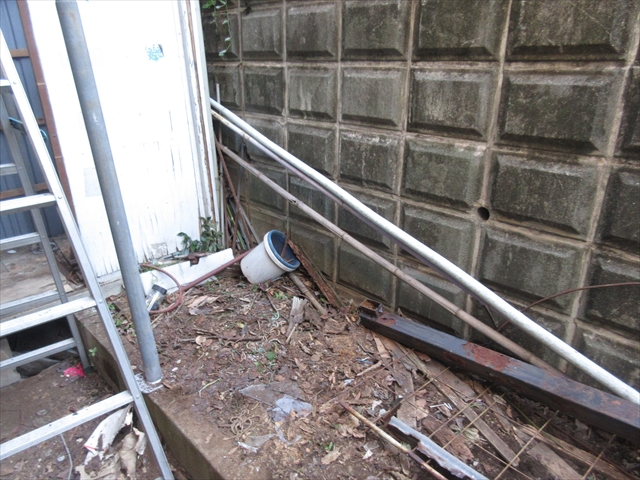 本日は4名で作業していましたが、1名が小さいベランダの解体で残り2名で大きなベランダの解体をもう1名が物置の解体やお庭の片付けなどを行いました。